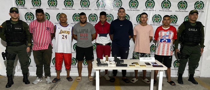 Fueron cuatro diligencias de allanamiento y registro ejecutadas por el Gaula y el Grupo de Operaciones Especiales en el municipio de Malambo las que dejaron como resultado las capturas de seis sujetos sobre quienes recaían órdenes de captura por concierto para delinquir y extorsión, pero también fueron capturados en flagrancia dos más por porte ilegal ya que durante los registros fueron halladas dos armas de fuego, dos armas traumáticas, cuatro cajas de munición traumática y tres celulares.