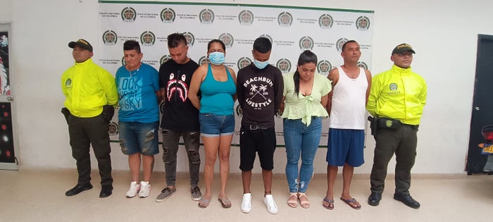Los capturados fueron identificados como: Deivis Antonio Rivas Ospino; Ana María Martínez, alias ‘La Bruja’; Loren Laid Lanza Caro, indiciada por el delito de lesiones personales; Greicy Celena Lanza Caro, alias ‘Celene’; Adrian Enrique Padilla Barrios, alias ‘El Chino’, indiciado por tráfico, fabricación o porte de estupefacientes, en el año 2018 y 2020; y Carlos Ricardo Lanza Caro, alias Carlitos Lanza, indiciado fabricación, tráfico y porte de armas de fuego o municiones 2018, indiciado lesiones 2020.