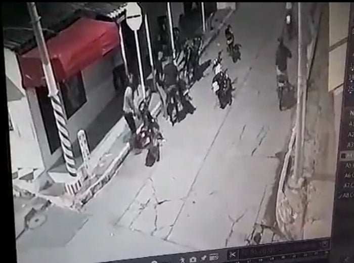 La filmación muestra cómo los antisociales a bordo de cinco motocicletas llegaron hasta el lugar y con armas de fuego asaltaron a sus víctimas.