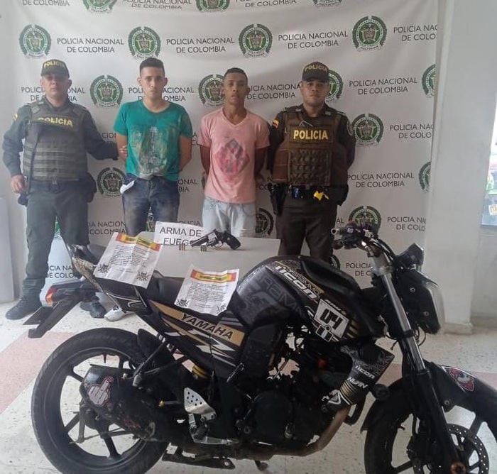 A los dos sujetos se les halló un arma de fuego con tres cartuchos percutidos y tres más sin percutir, panfletos intimidantes y les incautaron la motocicleta en la que habían llegado al lugar y en la que pretendían huir del sector.