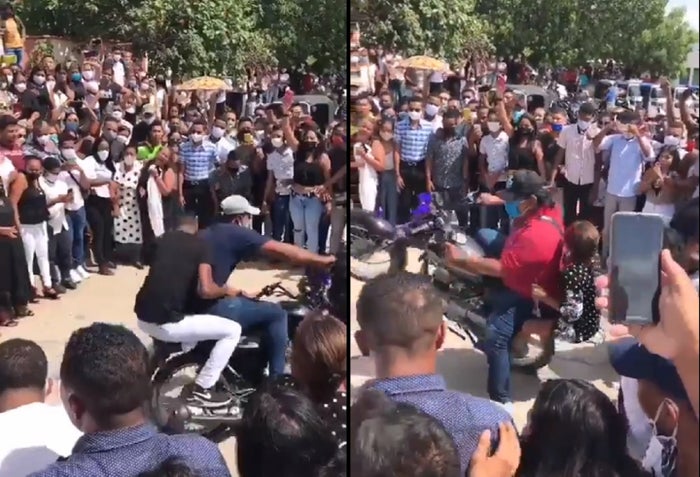 Durante el sepelio, seguramente a manera de homenaje, algunas personas empezaron a hacer acrobacias en moto. Mientras tanto, otras bailaban al ritmo de la champeta. Incluso, hacían el popular 'circulito' para que algún arriesgado saliera a presumir sus mejores pasos.