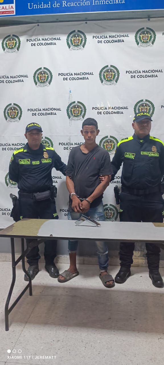 El sujeto y el arma fueron dejados a disposición de la Fiscalía General de la Nación por el presunto delito de Fabricación, tráfico, porte o porte de armas de fuego y/o municiones.