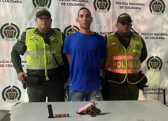 Al practicarle un registro a la persona, los uniformados, presuntamente, le hallaron una pistola marca Jericho con 10 cartuchos para la misma. De inmediato le leyeron sus derechos como persona capturada y lo dejaron a disposición de la Fiscalía General de la Nación.