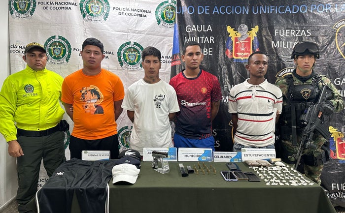 Los hombres de 21, 26, 22 y 23 años de edad, fueron identificados como: Andrés Felipe Tapicero Alandete, alias la Vaca, quien registra dos anotaciones por homicidio, una por porte ilegal, una por porte de estupefacientes y acto sexual con menor de 14 años; Andrés Felipe Garnica Romero, alias Andrecito, con tres anotaciones por homicidio y una por daño en bien ajeno; Sebastián Andrés Pérez Pérez, alias Cinco con una anotación por concierto para delinquir agravado para darse extorsión; y David De Jesús Campo Ortiz, con cuatro anotaciones por lesiones culposas, una por porte ilegal de armas y hurto calificado.