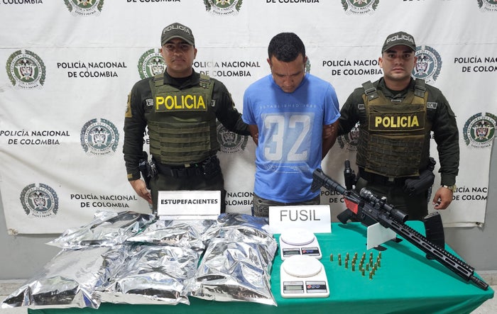 Durante el procedimiento, las autoridades incautaron un fusil AR-15 calibre 5.56 mm, un proveedor, una mira telescópica 4x32, 25 cartuchos calibre 9 mm sin percutir y tres kilos de marihuana. Alias “El Negro Daniel” fue capturado por los delitos de fabricación, porte o tenencia de armas de fuego o municiones y tráfico, fabricación o porte de estupefacientes.
