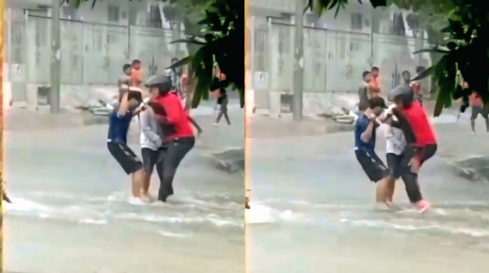 Cortesía, comunidad barrio El Santuario. Menores de edad atracando mientras llovía en Barranquilla.