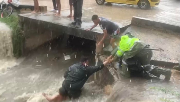 El agua lo llevó hasta un box coulvert, motivo por el cual el patrullero José Jiménez, adscrito a la Fuerza de Control Territorial (Fucot) de la Policía Metropolitana de Barranquilla, decidió lanzarse a la corriente y con la ayuda de otro uniformado y de la comunidad, logró evitar que el agua siguiera arrastrando al niño, el cual resultó ileso.