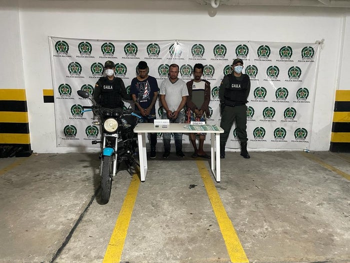 Según reporte de las autoridades las personas capturadas eran los encargados de realizar la entrega de panfletos e intimidar a comerciantes del sector y presentan anotaciones judiciales por hurto, tráfico de moneda falsificada, fabricación, o porte de estupefacientes, fabricación y tráfico y porte de armas de fuego o municiones, por lo que, fueron dejados a disposición de las autoridades competentes para responder por el delito antes mencionado.