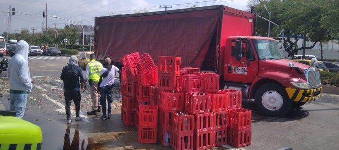 Un camión repartidor de gaseosas, fue saqueado este martes en la intersección de la calle 30 con carrera 4, luego de que varias botellas cayeran al pavimento debido a una maniobra del conductor al intentar girar.