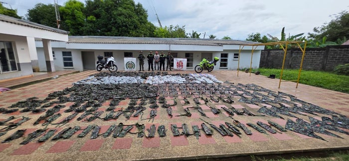 Tropas del Batallón de Infantería Aerotransportado N.° 31 Rifles, adscritas a la Décima Primera Brigada del Ejército Nacional, junto a la Policía Nacional, incautaron abundante material de intendencia de uso privativo de las Fuerzas Militares de propiedad del Clan del Golfo.