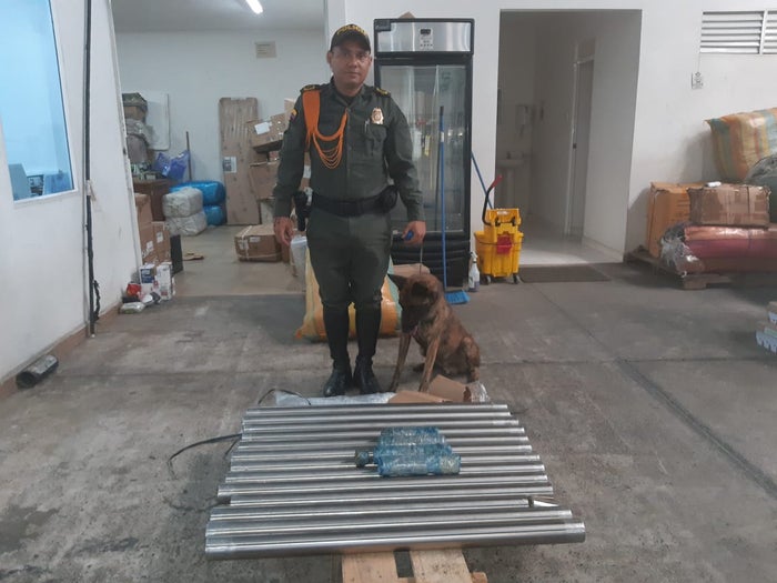 La acción eficiente de “Jalisco”, un perro experimentado permitió detectar una caja con 13 tubos totalmente galvanizados y dentro de ellos se encontraron un total de 44,2 kilogramos de marihuana. El operativo se llevó a cabo en una de las bodegas de envío de mercancía en el municipio de Montería.