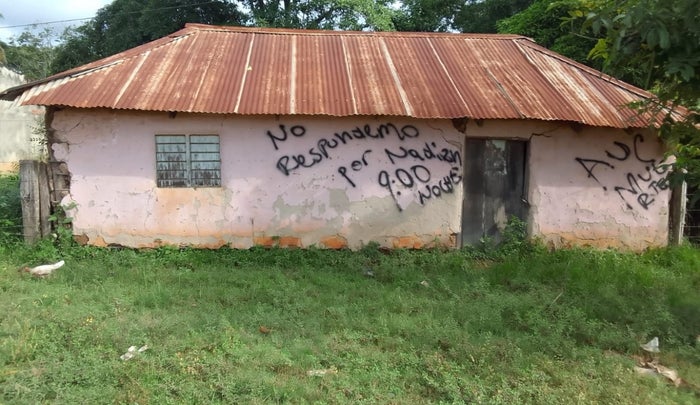 Los grafitis aparecieron en siete casas de esta zona del departamento donde invitan a la comunidad a no estar afuera de sus inmuebles después de las 9:00 p.m. Igualmente, a los delincuentes dedicados al hurto de ganado.