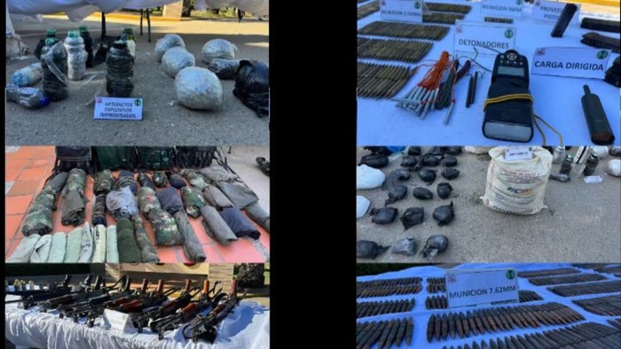 Durante la operación militar se incautaron 12 fusiles, una pistola, un lanzagranadas, 3.000 cartuchos calibre 7.62 mm, 789 cartuchos calibre 5.56 mm, 6 granadas de 40 mm, 35 proveedores, 40 paquetes de explosivos (equivalentes a más de 100 kilos), 5 detonadores, material con el que pretendían atentar contra la Fuerza Pública y la población.
