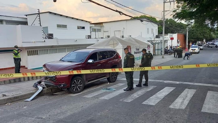 Las autoridades llegaron al sitio a realizar el respectivo levantamiento del cuerpo y a recopilar evidencias, pues fueron múltiples los impactos de arma de fuego que recibió el abogado que estrelló su vehículo contra un separador.