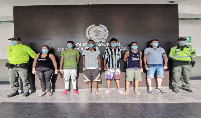 Las personas capturadas fueron identificadas como José Orlando Estévez Cristancho de 53 años, alias “Cheo”; Cristian Gerardo Blanco Ortiz de 36 años, alias “El Mono”; Richard Fabian Quintero Uribe, alias “Volao” de 22 años de edad; Wilmer Esneider Rodríguez de 21 años, alias “El Soldado”; Winston Javier Yáñez Castellanos conocido como “Winston” y la ciudadana venezolana Alexandra María Arciniega Amaya de 29 años de edad conocida como “La Gorda”, según reporte de la Policía.