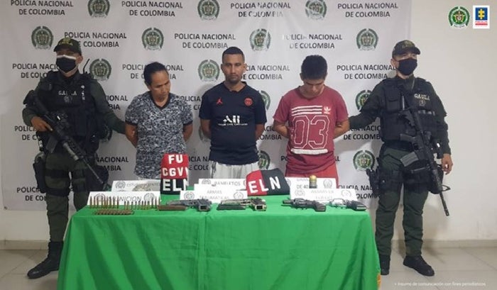 En medio del procedimiento policial, se incautaron dos armas de fuego tipo revólver, dos armas traumáticas, diez panfletos, un brazalete y una pañoleta alusivos al ELN. Asimismo, diez cartuchos calibre 7.62 mm, 12 cartuchos 5.56 mm y una granada de 40 mm, 33 gramos de cocaína y 77 gramos de marihuana, información entregada por la Fiscalía General de la Nación.