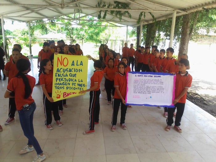 Estudiantes, padres de familia y líderes sociales participaron de una protesta pacifíca en el corregimiento de Petrolea zona rural de Tibú, por la circulación de panfletos amenazantes contra varios docentes del Catatumbo.