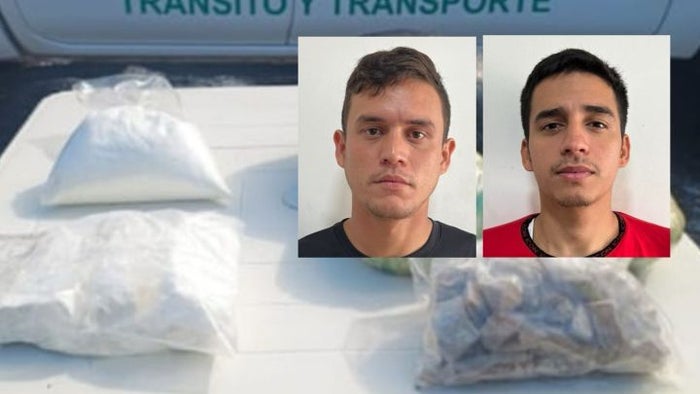 Según la Policía al revisar los bolsos de los dos uniformados, observaron que tenían en su poder siete paquetes en bolsas plásticas y con un olor de sustancia de alucinógenos.