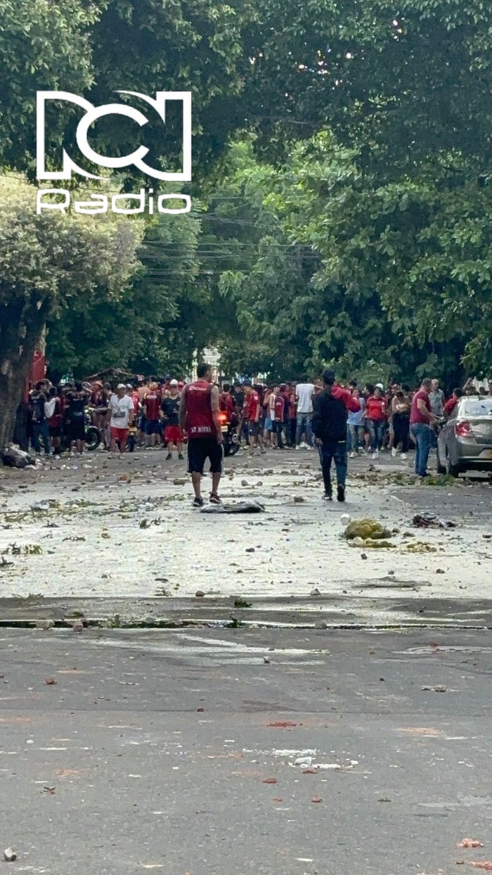 El coronel Diego Díaz comandante operativo de la Policía Metropolitana de Cúcuta dijo a RCN " un grupo de jóvenes pretendían ingresar a la fuerza de manera violenta al estadio y posteriormente lanzaron piedras u otros objetos contra los vehículos que se encontraban en las vías y las viviendas del lugar, con el objetivo de mantener el control enviamos al UNDMO , afortunadamente no tenemos personas heridas ni en el interior del estadio, ni a las afueras del escenario deportivo".