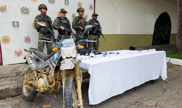 "Durante el desarrollo de la operación militar fueron incautadas varias armas y material de interés estratégico para las investigaciones. Las tropas lograron recuperar un fusil Galil calibre 5.56 milímetros, una pistola de 9 milímetros, un revólver calibre 38 milímetros, 47 cartuchos de diferentes calibres, dos proveedores, una mira óptica, un teléfono celular y una motocicleta, elementos que ahora hacen parte del proceso judicial en contra de los detenidos", puntualizó el coronel.