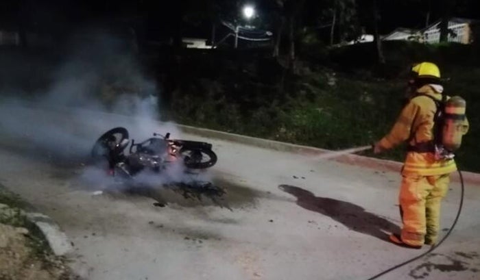 La comunidad del sector informó de la incineración de la motocicleta al Cuerpo de Bomberos Voluntarios de Pitalito que acudió al lugar y extinguió el poco fuego que quedaba.