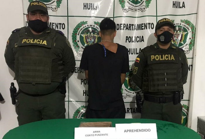 En un comunicado emitido, se desataca que en una oportuna reacción de la Policía Nacional en dicha población del sur del Huila, y gracias al apoyo de la comunidad del sector Los Lagos de la vereda Porvenir, fue aprehendido un adolescente de 17 años de edad, el cual, según testigos, momentos antes había agredido con arma blanca a un joven de 19 años, provocándole una grave herida a la altura del cuello.
