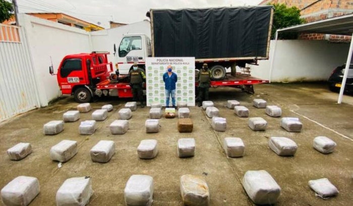 En la vía que de Garzón conduce a la capital huilense, uniformados de la Seccional de Tránsito y Transporte del departamento capturaron en las últimas horas a un hombre, quien fue sorprendido transportando 500 kilos de marihuana, camuflados al interior de un camión tipo turbo con una carga de canastillas de piña, las cuales contenían 37 paquetes de estupefacientes y estaría avaluado en más de 120 millones de pesos.