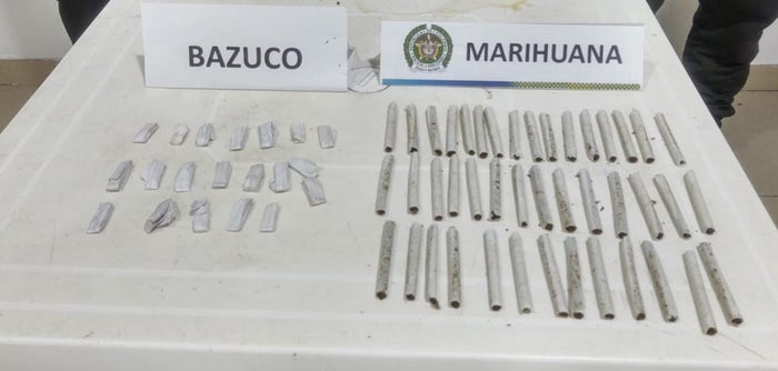 Durante la incautación fueron hallados 43 cigarrillos de marihuana y 39 papeleta de bazuco lista para su comercialización.