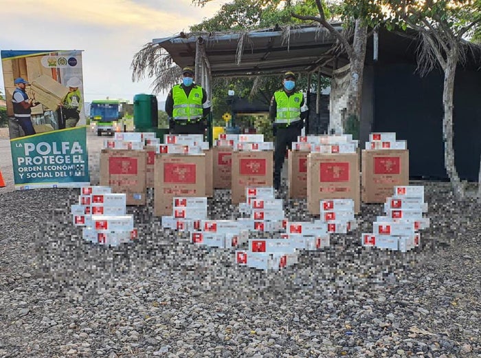 A través del marco del Centro Integrado Contra el Contrabando de Cigarrillos y Licores, el Comando del Departamento de Policía Guajira y la Policía Fiscal y Aduanera, en coordinación con la Dian, llevaron a cabo en un puesto de control ubicado en el kilómetro 35, vía Distracción-Cuestecita, La Guajira, una diligencia en la que lograron incautar cajetillas de cigarrillos de origen asiático.
