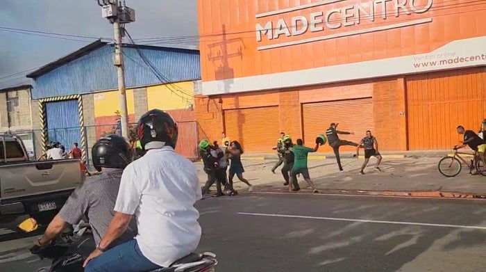 Los policías y las cuatro personas se enfrentaron a golpes, con armas blancas y con armas de fuego, algunas mujeres cercanas a los que se enfrentaban con los uniformados, intervinieron para que los implicados no se siguieran agrediendo.