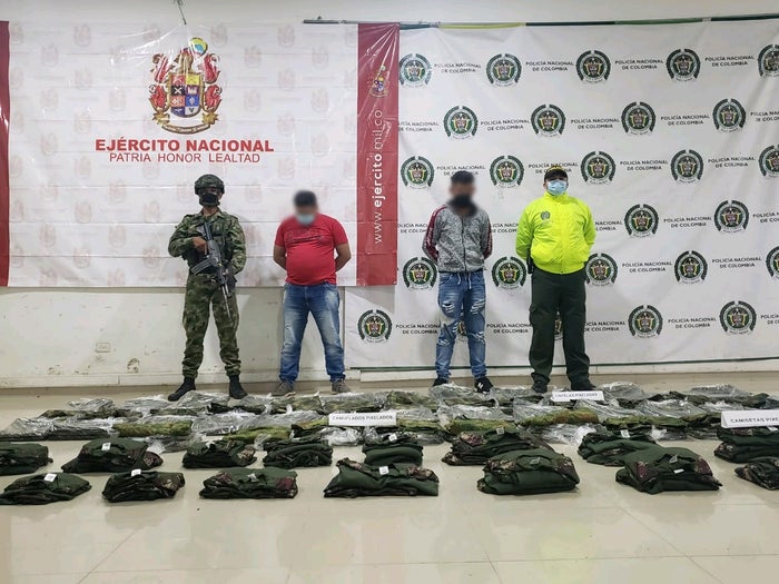 El operativo se llevó a cabo en la terminal de carga del Aeropuerto Los Garzones, cuando recibían una encomienda proveniente de Bogotá que contenía 30 pantalones de uniformes camuflados pixelados, 90 cintelas pixeladas y 78 buzos pixelados con características similares a las prendas utilizadas en los uniformes del Ejército Nacional.