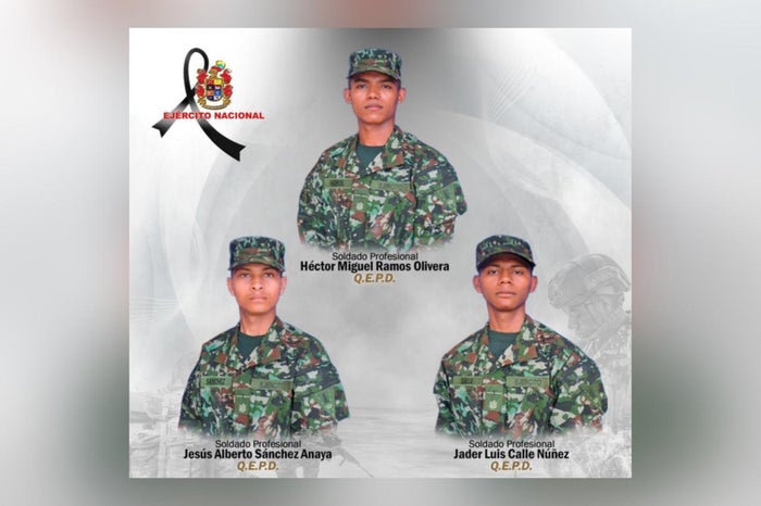 Los militares asesinados, fueron identificados como los soldados profesionales Jesús Alberto Sánchez Anaya, oriundo del departamento de Atlántico; Jader Luis Calle Núñez, oriundo del departamento de Sucre, y Héctor Miguel Ramos Olivera.