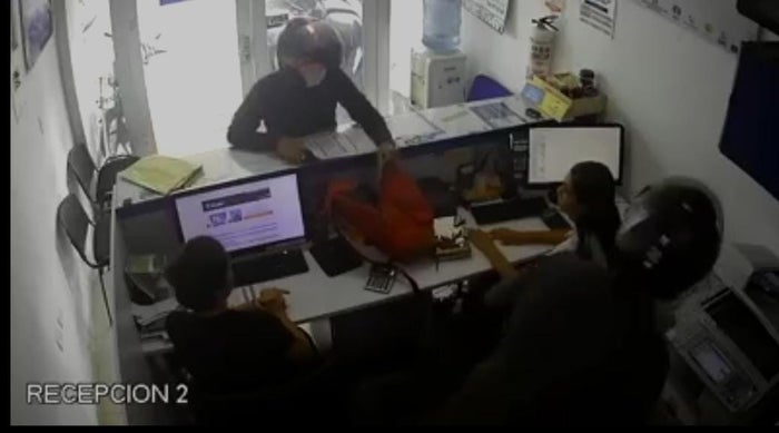 En el video, que ya circula en redes sociales, se evidencia cuando los delincuentes intimidan a los trabajadores, quienes proceden a entregarle el dinero, que es guardado en un bolso.