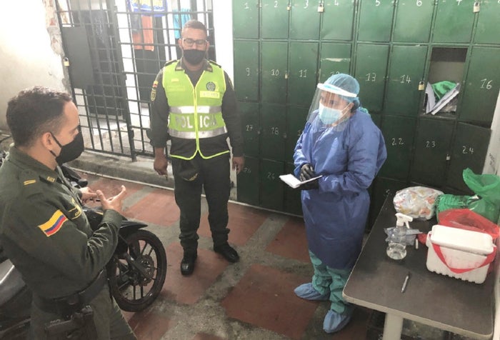 Con el objetivo de poder conocer el estado de salud de las personas que se encuentran privadas de la libertad mientras le definen su situación judicial, en las últimas horas fue adelantado un operativo en las instalaciones del Comando de Atención Inmediata, CAI, del barrio Bogotá, en el que se les practicaron pruebas de diagnóstico de Covid-19 a 14 personas que van a ser trasladadas por parte del INPEC a la cárcel de Rivera.