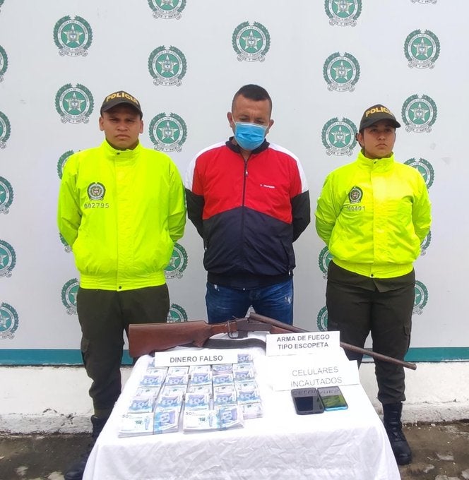 Se le incautó material de guerra y 50 millones de pesos falsos.