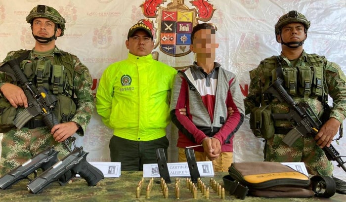 “Al momento de la captura, el sujeto portaba dos pistolas, robadas a la Unidad Nacional de Protección (UNP) días anteriores, proveedores y material de comunicaciones, con los que adelantaba acciones delictivas y terroristas para la consecución de material de guerra en zona rural del Catatumbo” indicó el Brigadier General Fabio Caro Cancelado, Comandante del Comando Específico de Norte de Santander.