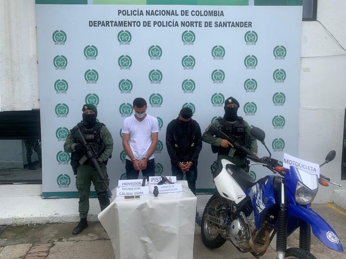 El coronel Carlos Martínez, comandante de la Policía de Norte de Santander, dijo que a las personas capturadas se les halló en su poder un arma de fuego tipo pistola marca Pietro Beretta calibre 9mm, un cargador con 15 cartuchos cal 9mm, una granada de fragmentación IM-26 y dos celulares para la respectiva investigación.