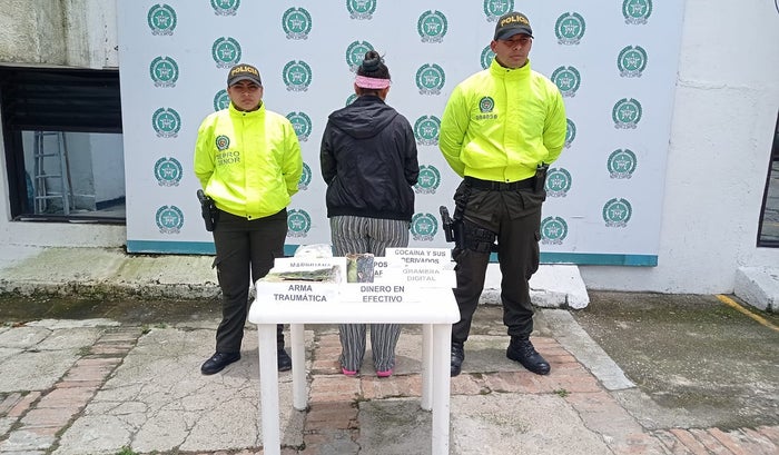 Esta persona según las autoridades vendría presuntamente dedicándose al tráfico y comercialización de estupefacientes en parques y entornos escolares. Según informó la policía, de trataría de Geinni Lorena Avendaño de 34 años de edad, natural de Hacarí y señalada por el presunto delito de fabricación, tráfico o porte de estupefacientes. Las autoridades le incautaron un arma traumática y varias dosis de alcaloide listas para ser comercializadas en parques y entornos escolares.
