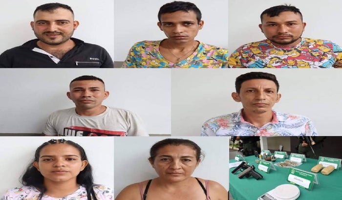 En esta acción, las autoridades lograron la aprehensión de un menor de edad y siete adultos, los cuales fueron identificados como Gelder Pacheco Bohórquez; Miguel Ángel Bautista Jaimes, también conocido como 'Migue'; Óscar Pacheco Bohórquez, alias 'Pipe'; Johana Failery Culma Rodríguez y Williams Álvarez Ovallos, alias 'El Polvorero'.