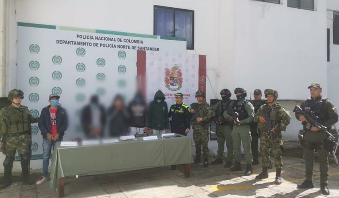 Mediante seis diligencias de registro y allanamiento en el casco urbano de Ocaña, la Seccional de Investigación e Inteligencia Policial con el apoyo del Grupo de Operaciones Especiales en coordinación con el Ejército Nacional y la Fiscalía Especializada No.128, lograron las capturas de alias 'Carlos', alias 'Jorge', alias 'Carmito', alias 'Yeiro', y alias 'Aleixer'.