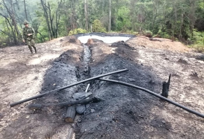 En desarrollo de operaciones militares de control de área, Tropas orgánicas de la Fuerza de Tarea Vulcano de la Segunda División del Ejército Nacional, lograron desmantelar dos refinerías ilegales, las cuales almacenaban el crudo hurtado del Oleoducto Caño Limón Coveñas, perteneciente al Grupo Armado Organizado (GAO)-Eln, frente Juan Fernando Porras Martínez, en el municipio de Tibú, Norte de Santander.