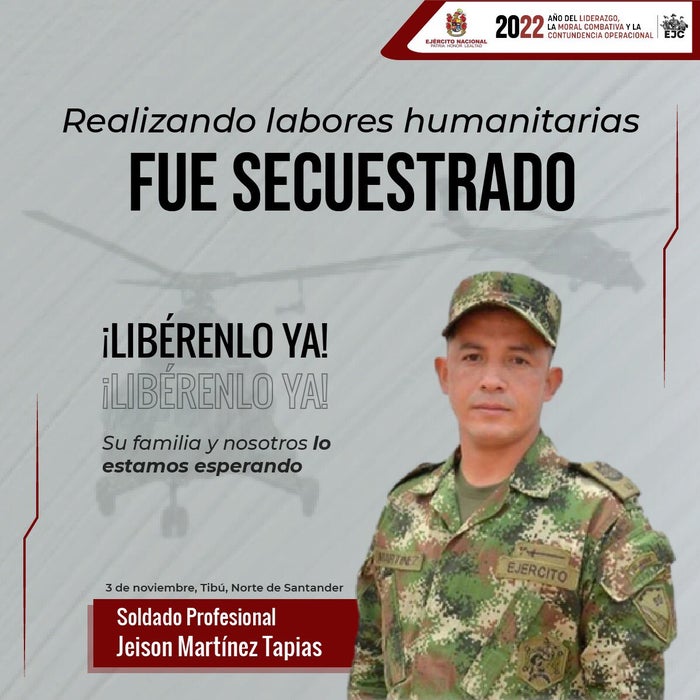 A través de un video el Eln entregó pruebas de supervivencia del soldado profesional Jeison Martínez Tapias quien fue secuestrado en Tibú, en momentos que realizaba labores de ingeniería en la vía Tibú- La Gabarra en la zona del Catatumbo.