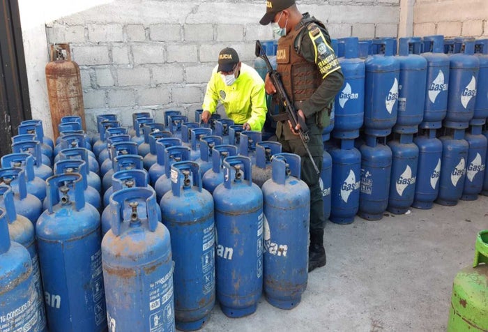 En los allanamientos fueron ubicados 11 cilindros de 100 libras, 78 cilindros de 40 libras, 224 cilindro de 33 libras y 68 cilindros universales avaluados en $50.000.000 millones.