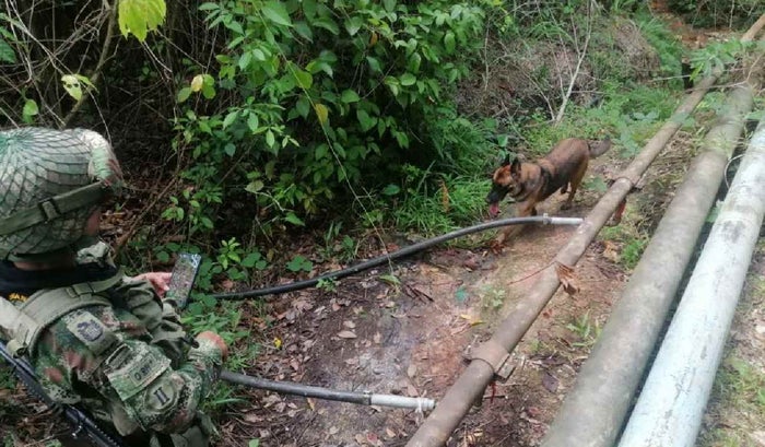 “las tropas descubrieron que al mecanismo de apoderamiento ilegal del crudo que allí funcionaba, le fue adaptado un mecanismo rudimentario con canecas metálicas encargadas del almacenamiento del crudo. Esta válvula ilegal fue destruida de manera controlada por nuestros técnicos en explosivos y demoliciones EXDE, bajo las medidas de seguridad pertinentes”, el coronel Diego Jaramillo Muñoz, comandante de la Fuerza de Tarea Vulcano.