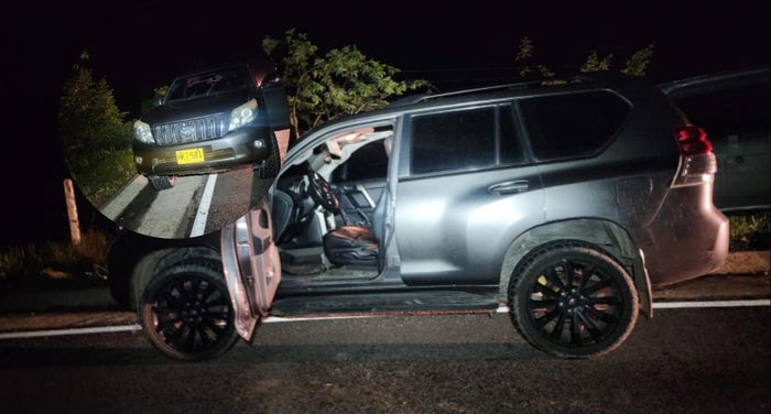 Cerca al lugar del hallazgo se encontró una camioneta blindada de color gris abandonada.