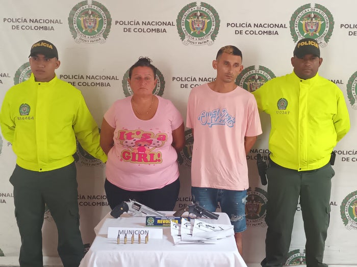 Los operativos se realizaron mediante diligencias de allanamiento y registro en el barrio San Vicente del municipio de Soledad, logran las capturas en flagrancia de alias el “veneco” de 31 años y alias “la mona” de 52 años de edad, incautándoles 02 armas de fuego tipo revólver calibre 38 con 10 cartuchos para la misma y 08 panfletos alusivos a un grupo delincuencial.
