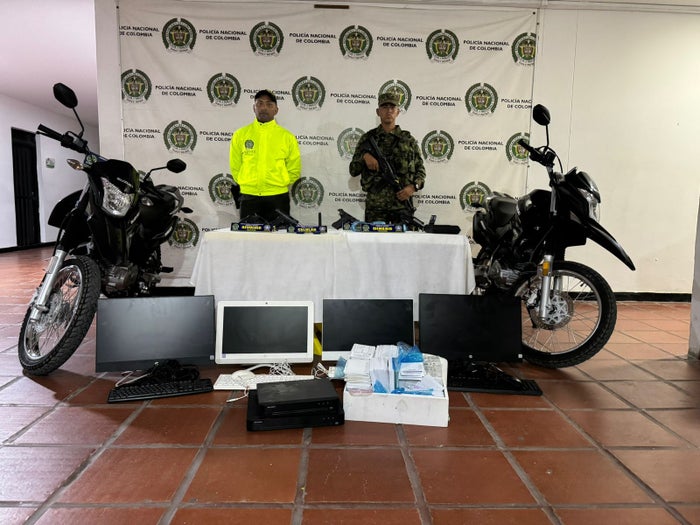 En este operativo policial se realizó la incautación de cuatro pistolas 9mm de marcas, tales como Jericho, Blow y Ekol, así mismo la incautación de un revolver marca Llama 38mm, 34 cartuchos, dos proveedores, dos motocicletas, cuatro computadores, dos celulares y la suma en dinero de más de siete millones de pesos.