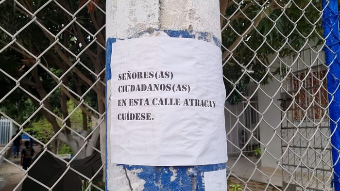 Tras la racha de atracos que se viene presentando en este sector del barrio Villa Linda, en el municipio de Soledad, Atlántico, los residentes decidieron pegar carteles en los postes en los que advierten a los transeúntes tener cuidado porque es una zona de hurtos.