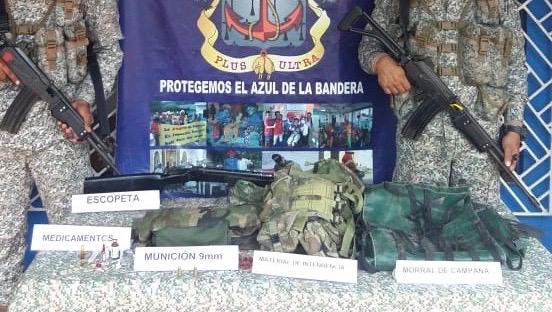 De igual modo los tripulantes de la Institución Naval adoptando todas las medidas de seguridad para este tipo de procedimientos y descartando la presencia de artefactos explosivos, con apoyo de la Seccional de Investigación Judicial - SIJIN, hallaron enterrado un morral de campaña que tenía en su interior el arma de fuego tipo escopeta, los dos cartuchos y el material de intendencia con insignias de las extintas FARC-EP.