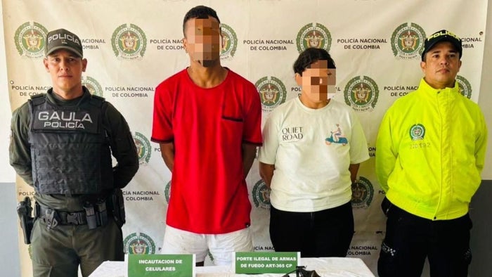 La Policía Nacional en el departamento del Atlántico, a través de unidades adscritas al Grupo de Acción Unificada por la Libertad Personal (GAULA), mediante labores investigativas en coordinación con la Fiscalía 4 Especializada EDA, logró la captura en flagrancia de un hombre y una mujer de 27 y 23 años por el delito de fabricación, tráfico, porte o tenencias de arma de fuego.